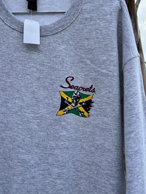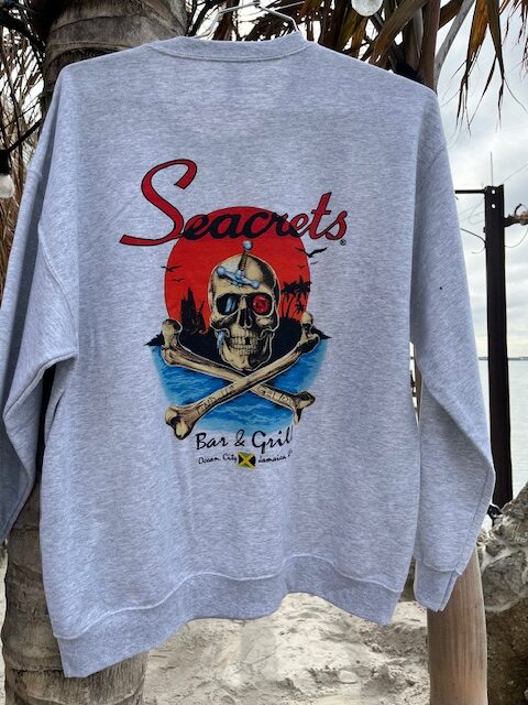Features our skull and crossbones logo a top one of our beautiful summer sunsets; this one is an oldie, but goodie!